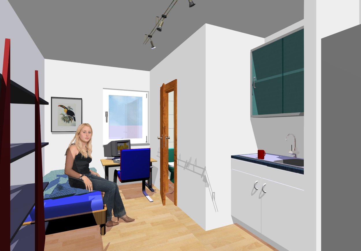 Mit 107 Appartements, alle mit eigenem Bad und Miniküche sowie grosszügigen Gemeinschaftsräumen.